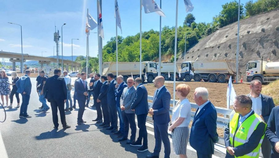 ПРЕДСЕДНИК Србије Александар Вучић присуствује отварању сектора Б5 обилазнице око Београда од петље Орловача до тунела Стражевица.