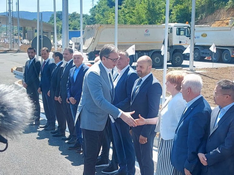 Председник је стигао, поздравио се са радницима, пожелео им срећан рад и сазнао да се вечерас у 18 сати пушта у саобраћај.