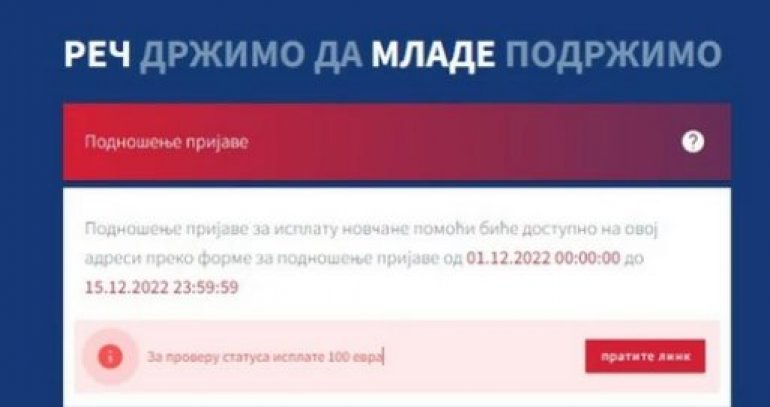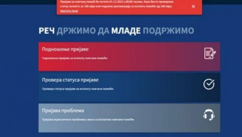 Новац ће корисницима бити на располагању после девет часова, односно почетка рада платног промета и раскњижавања уплата од стране банака преко којих се помоћ исплаћује. Мали је подсетио да је ове године младима већ два пута, прво у фебруару а потом и у јуну, исплаћивана помоћ у износу од по 100 евра у динарској противвредности.