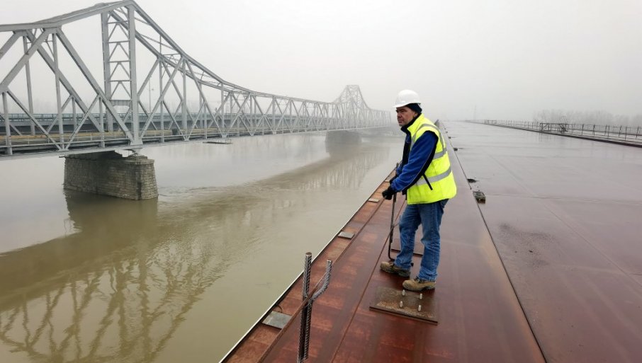 - Уз велики напор пројектанта, извођача радова и надзора, за осам и по месеци склопљена је и постављена конструкција - додаје Јоцић. - Толико је прошло од почетка сечења елемената конструкције у Турској до спуштања на место. Свака страна, правац будућег ауто-пута, тешка је око 2.750 тона, а заједно 5.500 тона. Цела конструкција је сечена и предмонтирана у Турској. Овде, на градилишту је укрупњена и подужно превучена на другу обалу. Мост је над реком дуг 330 метара и конструкција се састоји од 23 сегмента свака. У циљу брже изградње и да се победи Сава, направљен је привремени плато. Брдо од више од 100.000 кубика шљунка. Платфрома је бетонирана као аеродромска писта. Сви ти модули су кроз систем кранова постављени у сегменте на лицу места. Тако укрупњени, модул по модул, сегмент по сегмент је заварен. Уверен сам да је овај челични део моста најквалитетнија конструкција израђена у челику на овим просторима.