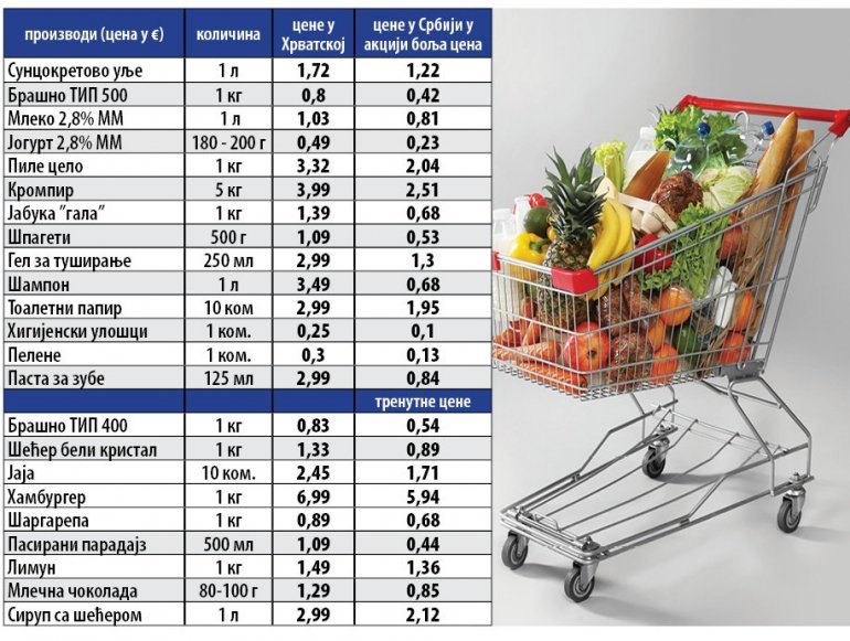 УПОРЕДИЛИ СМО ЦЕНЕ У СРБИЈИ И ХРВАТСКОЈ: Колико коштају намирнице у Србији, а колико у региону (ФОТО)