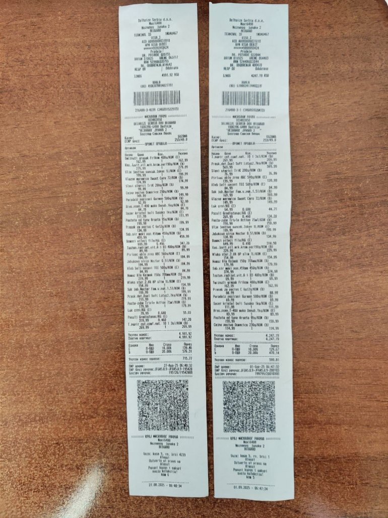 Погледајте како су изгледала два рачуна које је платио министар - један пре појефтињења и један од јутрос, са новим ценама у маркетима: