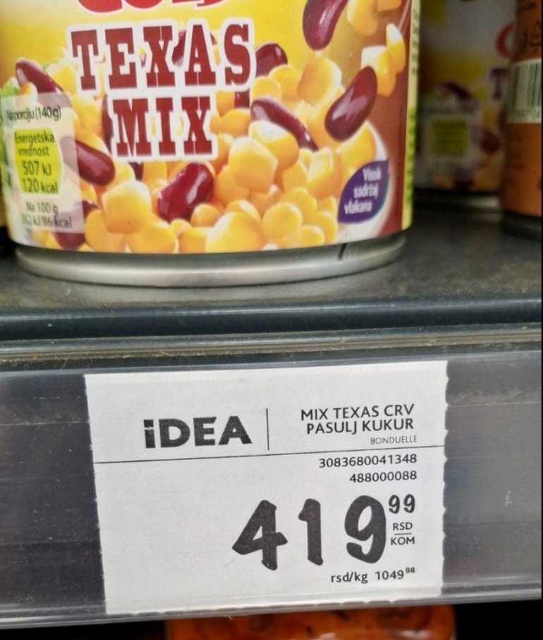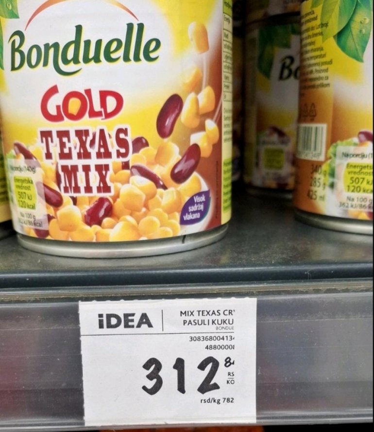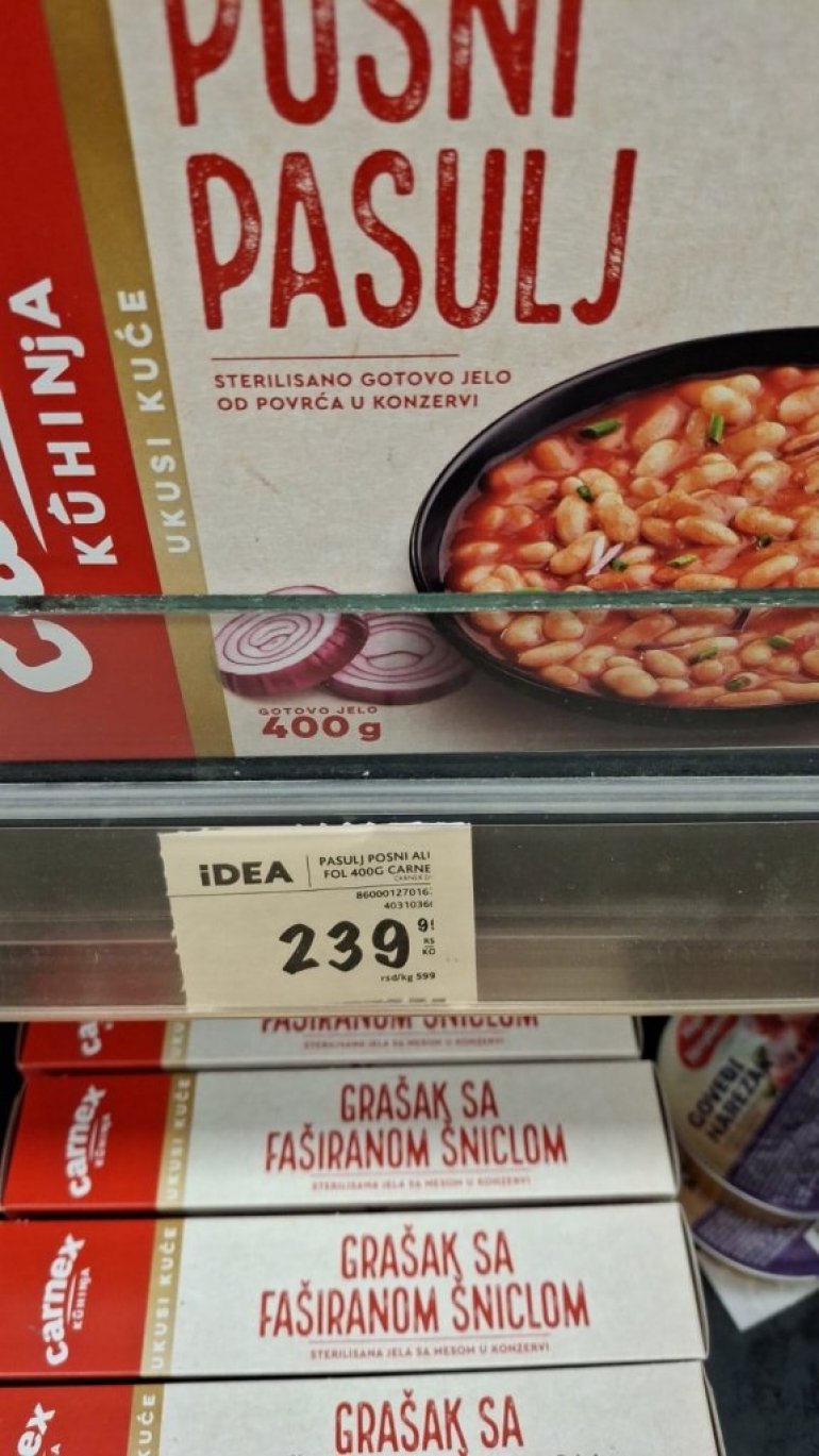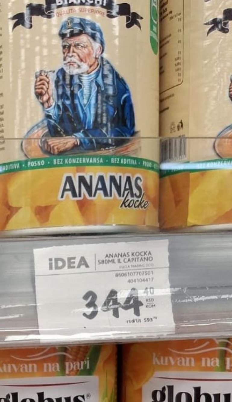 Један од примера је готови пасуљ који је пре појефтињења коштао 239 док сада кошта 237, такође ананас у конзерви је коштао 479 док сада кошта 344.