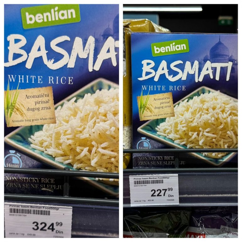 Пиринач који је пре појефтињења коштао 324 динара, сада кошта 227.