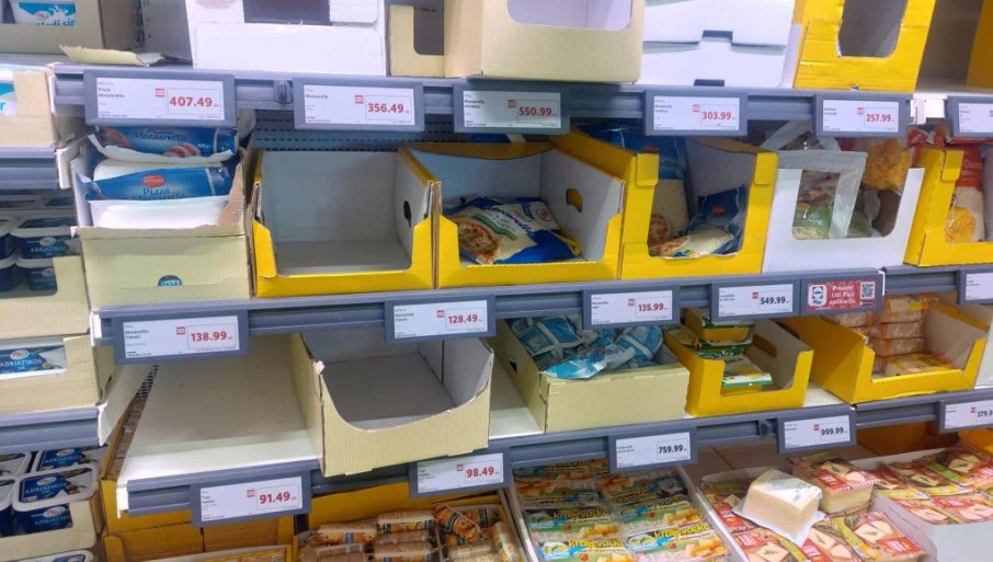 Много је артикала – од прехрамбених производа до козметике и кућне хемије – на којима су цене написане црвеном бојом, са ознаком „ниже цене“. Ти рафови су до 14 часова углавном били испражњени.