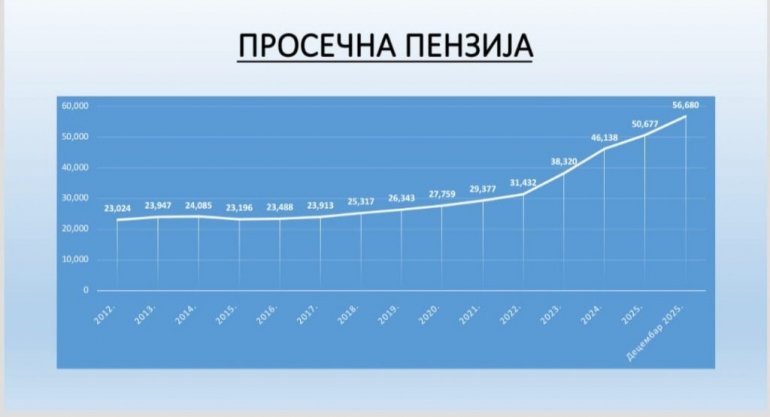 Додао је да је просечна пензија у 2025. години износила око 437 евра, док ће просечна пензија у овој години бити око 485 евра.