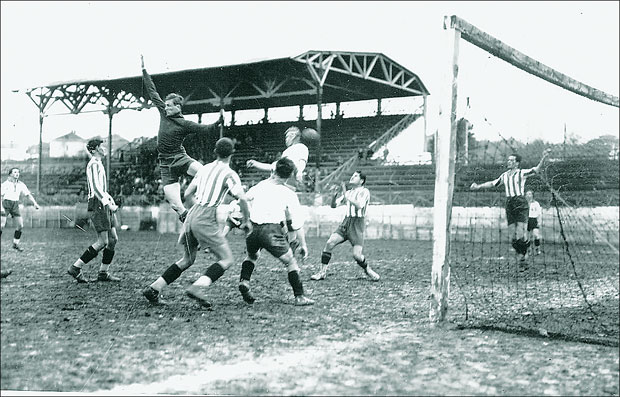 Прва игра на два гола, с надуваном кожном лоптом, била је 19. маја 1896. године. У ноћи после прве јавне утакмице на Губеревцу, под окриљем мрака Београђани су разнели готово целу дрвену ограду