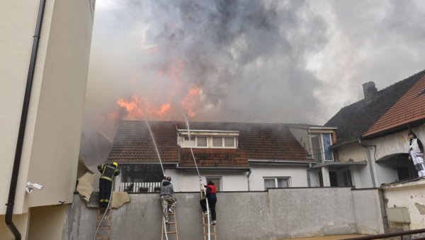 Како се види на фотографијама, ватрогасци су стигли на лице места. Густ дим куља на све стране, а окупили су се и грађани.