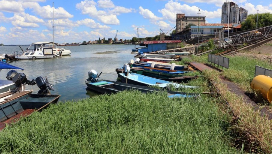 СПЛАВОВИ И ЧАМЦИ ЗАРАСЛИ У ТРАВУ: Низак водостај Дунава код Смедерева