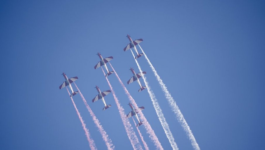 СПЕКТАКЛ НА НЕБУ КАТАРА: Авионске акробације изнад стадиона "Лусаил" уочи финала Мундијала (ФОТО)