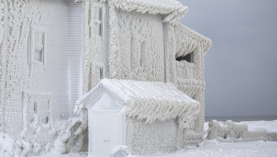 НАКОН снажне зимске олује која је погодила Онтарио, куће дуж обале језера Ери биле су у потпуности прекривене ледом.