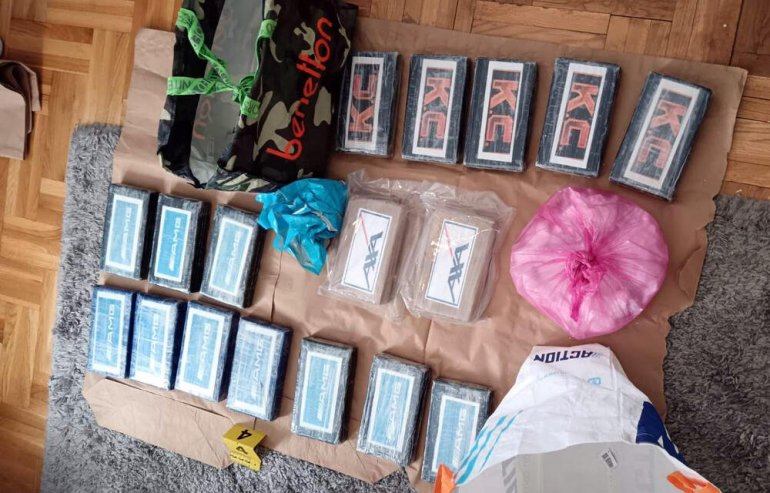 -Полиција је претресом више станова које су користили осумњичени на територији Чукарице пронашла више од 18 килограма кокаина, спакованог у 17 пакета, као и друге предмете које су користили за припремање кокаина за даљу продају.