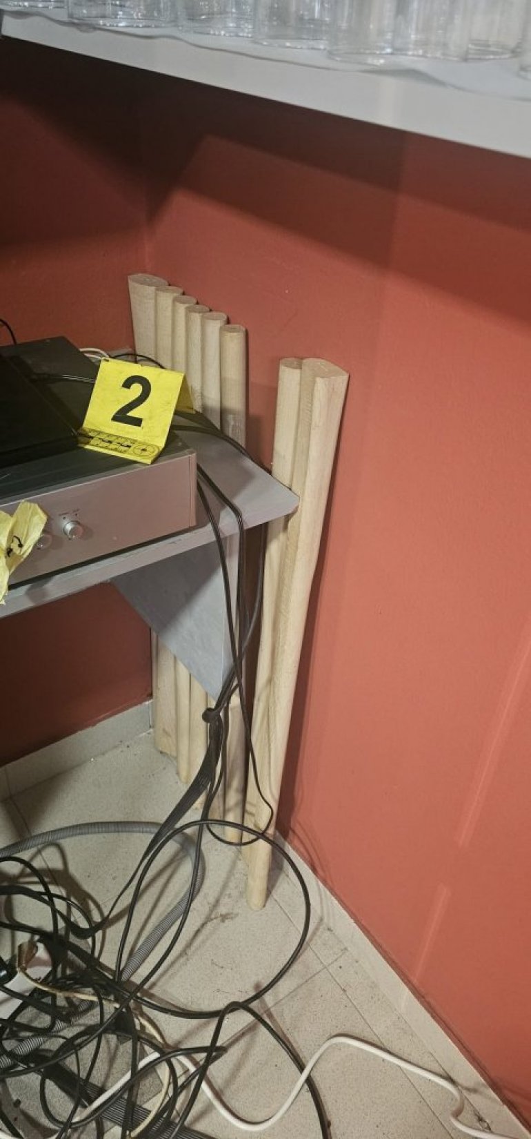 Приликом претреса пронађена је мајица у којој је био током догађаја и 10 дрвених палица