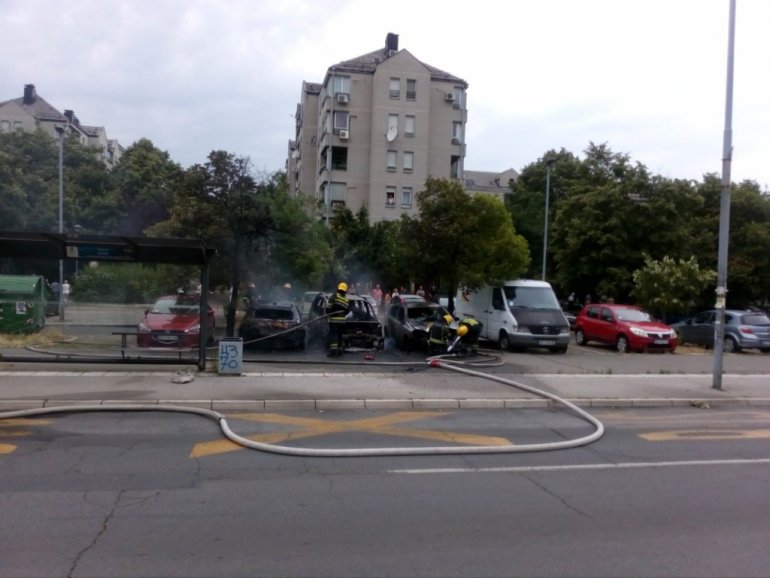 Према првим информацијама запалило се возило на паркингу, а ватра се проширила и на аутомобиле који су били поред.