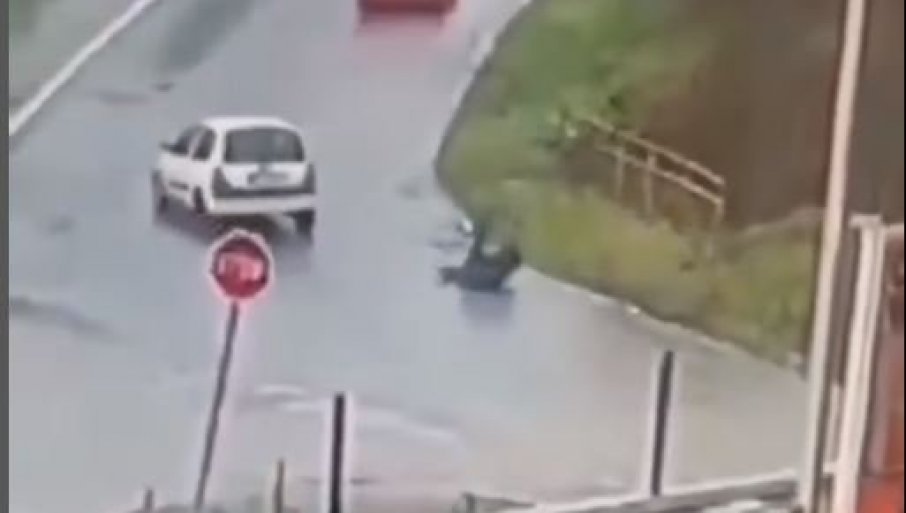 Ужасан видео саобраћајне незгоде у којој је умало настрадао један пешак појавио се на друштвеним мрежама вечерас.