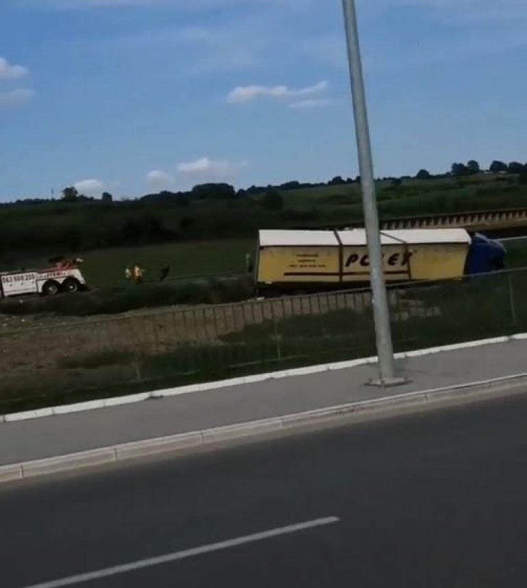 ДРАМА КОД ИКЕЕ: Шлепер слетео с пута на петљи Бубањ Поток (ФОТО)