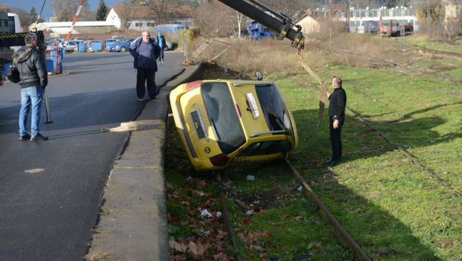 Овом приликом, како сазнајемо, нико није повређен, а убрзо је ангажована и дизалица како би се аутомобил уклонио са шина.