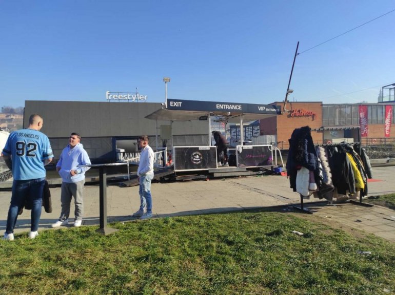Како су нам кратко рекли људи које смо затекли испред, тренутно се избацују јакне и гардероба, како би бар нешто било спасено. Свакако је небезбедно ући у унутрашњост објекта, пошто је тај простор готово уништен. Људи који су овде узимају ствари, али многе нису спашене.