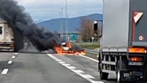 ГОРИ АУТОМОБИЛ НА ПУТУ НИШ-ДОЉЕВЦИ: Велики облак дима надвио се над путем (ВИДЕО)