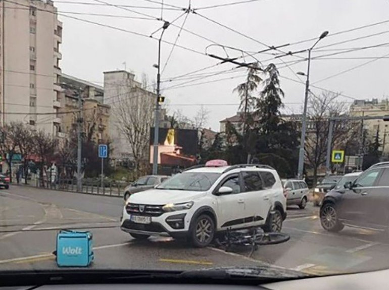 ЈЕДАН бицикл подлетео је под такси возило на Славији.