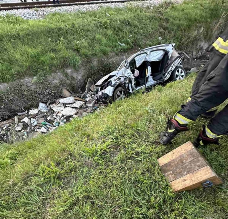 ВЕЦЕРАС нешто пре 20 часова путнички воз налетео је на аутомобил марке "Опел Мокка" и одбацио га у канал. Све се десило на необезбеђеном пружном прелазу на Лагатору.