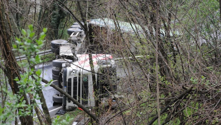 ПРЕВРНУО СЕ КАМИОН: Удес на Ибарској магистрали - ватрогасци извукли возача (ФОТО)