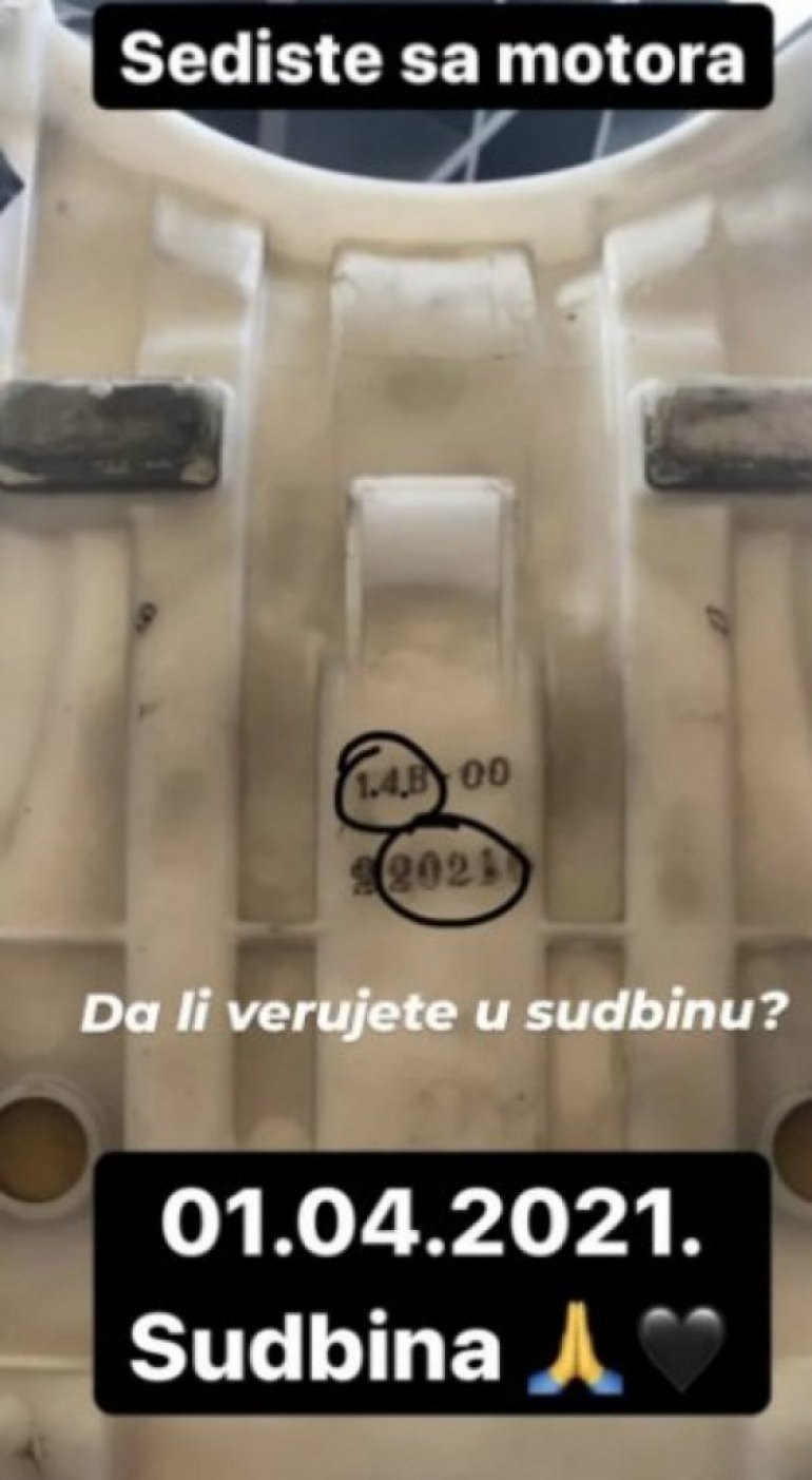 На фотографији, која је уз поруку "Да ли верујете у судбину?" објављена на Инстаграму виде се бројке са седишта, које се поклапају са датумом Синишине смрти.
