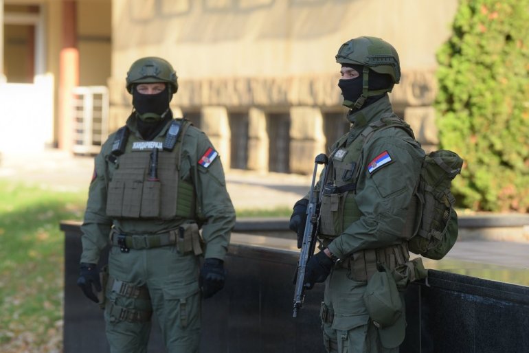 Припадници Жандармерије и Полиције испред и у згради суда, Фото П. Милошевић