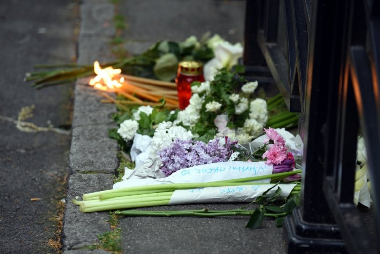ДЕДА једне од девојчица која је убијена у ходнику школе "Владислав Рибникар", као дежурна ученица, дошао је да ода почаст трагично настрадалој деци и Драгану Влаховићу, човеку који их је дочекивао и пратио из школе.