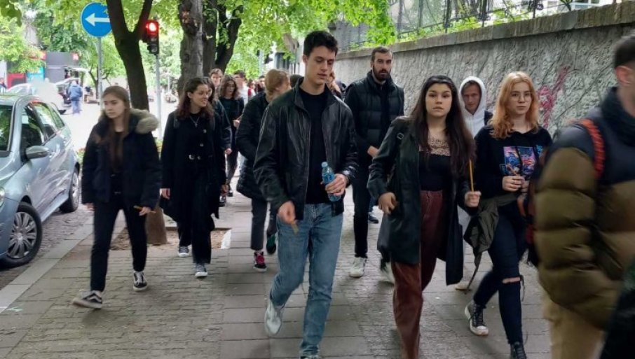 ВИШЕ хиљада ученика београдских средњих и основних школа се окупило испред Основне школе "Владислав Рибникар", како би одали пошту страдалим ђацима и чувару.