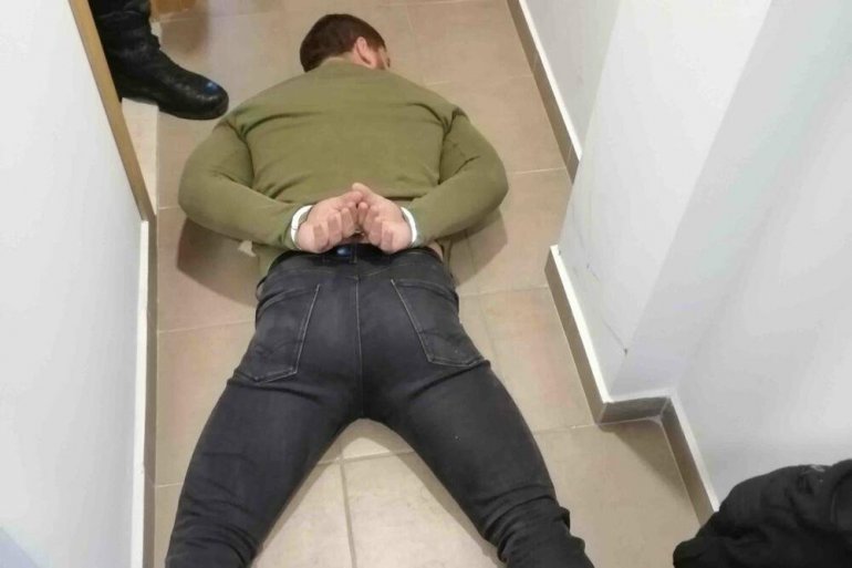 Он се потражује за кривично дело убиство у покушају које је извршио, како се сумња, на територији Републике Србије. Како се види на фотографији, он је оборен на земљу и стављене су му лисице.