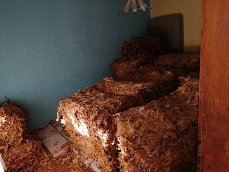 Полиција је приликом претреса стана и других просторија домаћинства у околини Шапца, у којем осумњичени борави, пронашла 5.445 килограма дувана у листу.