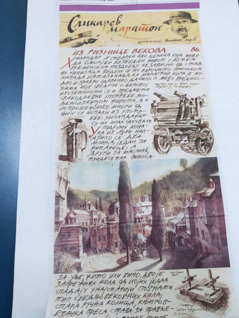 У "Вечерњим новостима" објавио је 190 ликовних и литерарних записа на страницама културе, у рубрици "Сликарев маратон".