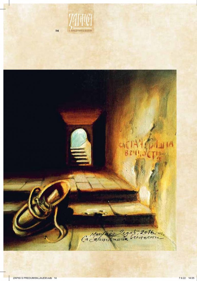 - Међутим, Грачаница на Косову, где су савременици поменутих великана, Михаило и Евстатије и њихови сарадници из дворске сликарске радионице краља Милутина оставили, такође, врхунска дела, опасан је високом и бодљикавом жицом. Налик концентрационом логору. Мало кога то узнемирава... На срећу, то није угасило сјај и духовну снагу који избијају из ових светиња. И тако, меандрирају злодела с трајним вредностима, која упркос многим невољама ипак опстају.