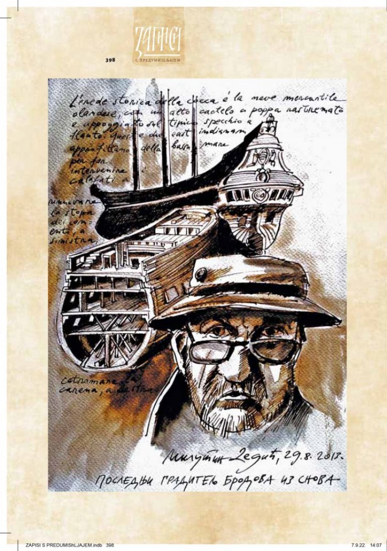 - Рано су почели да ми привлаче пажњу људи, њихова дела и трагови које су оставили. Први сачувани запис о томе урадио сам као шеснаестогодишњак 1951. године. Нацртао сам чесму у шибенском Варошу, где сам живео, која је годинама значила живот у том безводном делу града. Сада од ње нема ни трага нити је се ко сећа - објашњава Милутин Дедић на почетку ове јединствене књиге, у којој је својим пером и кичицом сачувао од заборава многе отиске минулих времена.
