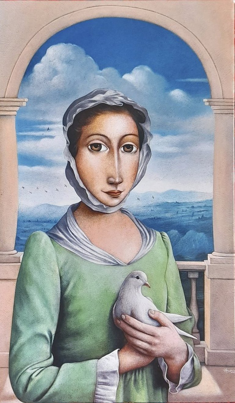 У питању је имагинарни портрет, не неке посебне личности, већ многих у једној, разоткривање човекове психологије, унутрашње грађе која формира лице и фигуру, портретистика која оставља места домаштавању, поетизацији и проширењу фигурације. На размеђи реалног, фантастичног, утопијског и идеалног, имагинарни портрет (тема и једне групне изложбе у Модерној галерији Ваљево), опредмећује се у целокупној историји уметности, посебно у готском и ренесансном сликарству када уметници поново освајају илузионистичке видове представљања.