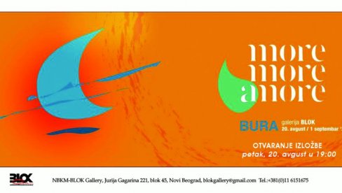 КАО креативни одговор на отуђеност, изолацију и ограниченост путовања у доба још присутне пандемије, али и као својеврстан позив уметника на повратак активном животу, Београдска уметничка радионица - БУРА, ће од 20. августа до 1. септембра, организовати мултимедијалну акцију под именом More.more.amore у Галерији Блок на Новом Београду.