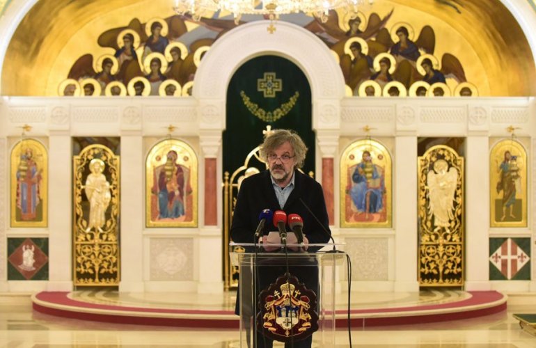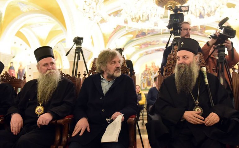 Митрополит Јоаникије, Емир Кустурица и патријарх Порфирије, Фото П. Милошевић