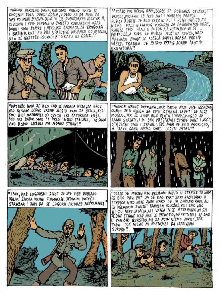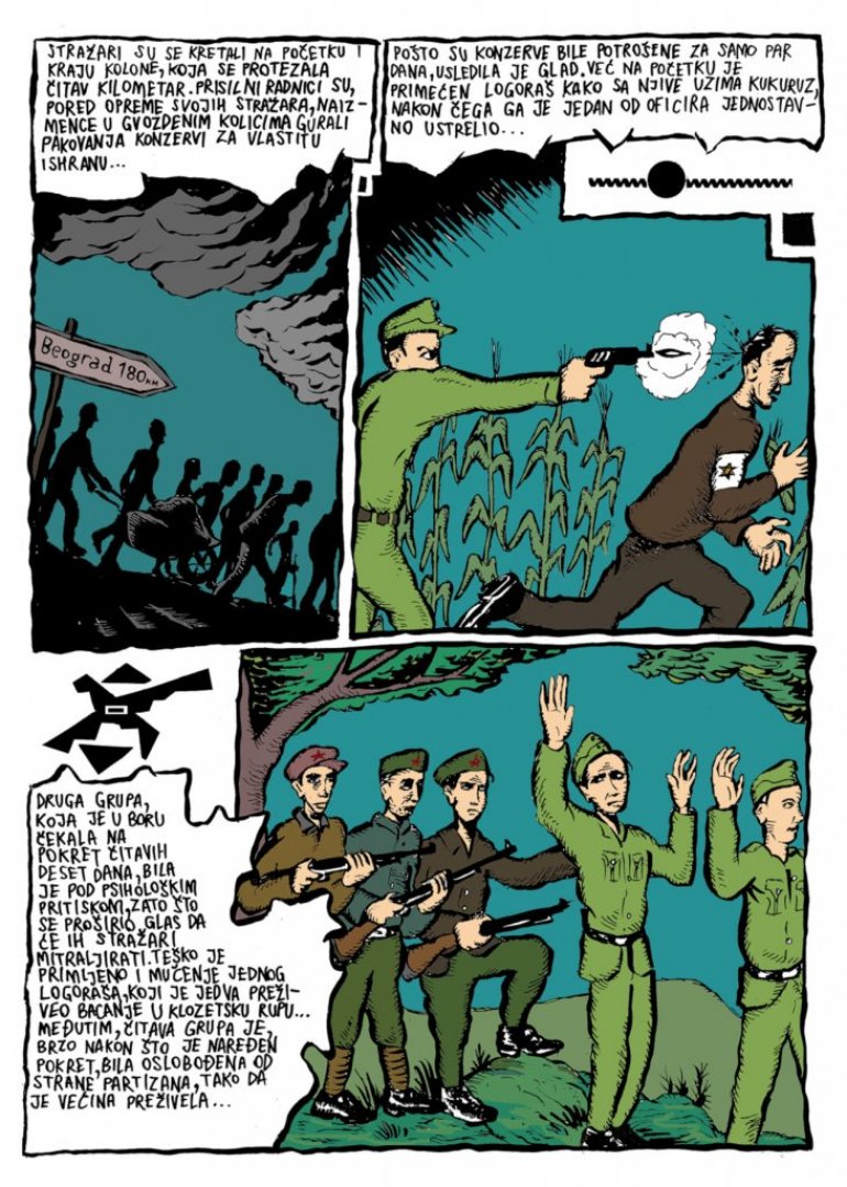 Збирку отвара потресна прича - "Писма Хилде Дајч" о судбини 20-годишње јеврејске студенткиње и болничке волонтерке, страдале 1942. у камиону душегупки на путу из логора Сајмиште ка масовној гробници у Јајинцима, стрип увршћен у библиотеку меморијалног центра Јад Вашем у Јерусалиму. Ту је и приповест о мађарском песнику Миклошу Раднотију на принудном раду у рудницима, стрип "6. 4. 1941" и они који тмурну ратну свакодневицу описују кроз приче о партизанским или новинама окупационих власти, затим "Саобраћајни тест" - настао из бележнице "Провери самог себе", намењене возачима камиона Трећег рајха, "Белешке из Америке", заснован на импресијама Владимира Дедијера са конференције УН у Сан Франциску 1945. и петоделна "Радослављева прича" достојна филмске екранизације на којој би јој позавидео и "Форест Гамп".