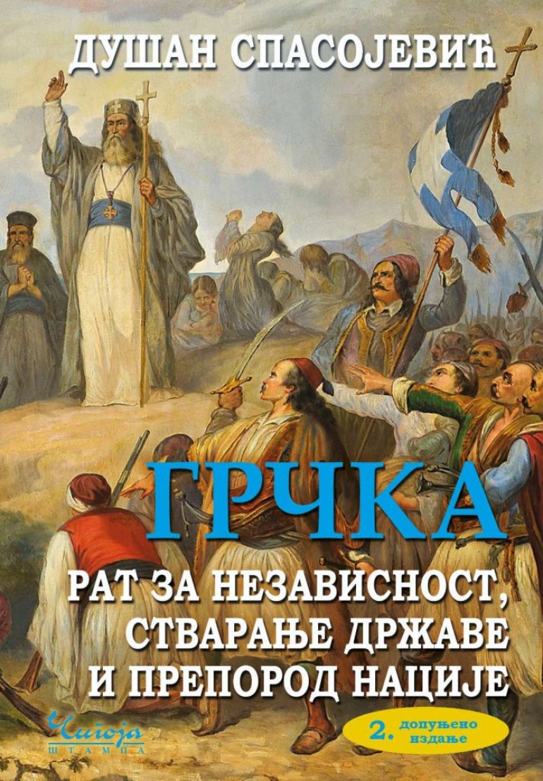 Грчка: рат за независност, стварање државе и препород нације прва је књига на српском језику које се бави темом данашње Грчке, темељима на којима је успостављена модерна грчка држава и створен национални идентитет савремених Грка. Настала је као плод вишегодишњег преданог рада, који је подразумевао истраживање опсежне архивске грађе и литературе, укључујући и грчку, чији језик аутор говори. Реч је о посебном издању у заједничком подухвату издавачке куће Чигоја штампа, Института за новију историју, Института за европске студије и Фондације „Шапер“. Подсећамо да се књига, чији су рецензенти тројица угледних историчара, професори београдског и солунског универзитета Милан Ристовић и Спиридон Сфетас и директор Института за новију историју др Миле Бјелајац, појавила о двестотој годишњици почетка борбе за ослобођење Грка од турске окупације.