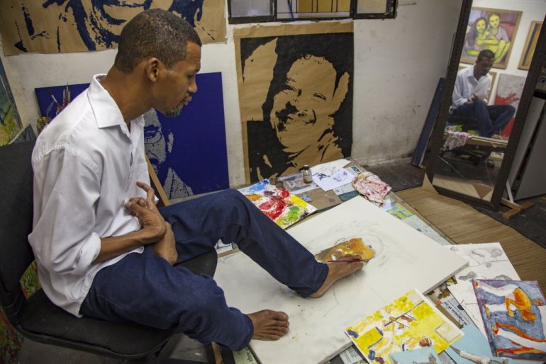 - Његова мајка је приметила да Маркос покушава левим стопалом да нацрта нешто парчетом угљена, које је нашао на улици и тада је све почело. Данас, Маркос је академски сликар који је студирао на факултету Белас Артес. Левим стопалом слика, црта, ваја, резбари, отискује графике, баш као сви остали сликари света! Ожењен је, има четворо деце, два унука, сопствену кућу.