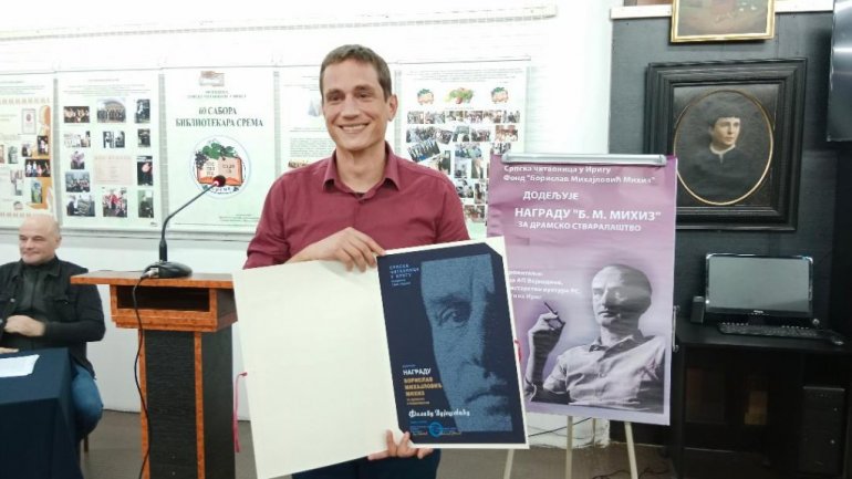 ДРАМСКИ писац Филип Вујошевић из Београда добитник је награде "Борислав Михајловић Михиз" која се додељује за драмско стваралаштво, а уручена је 17. октобра на Михизов рођендан у Српској читаоници у Иригу.