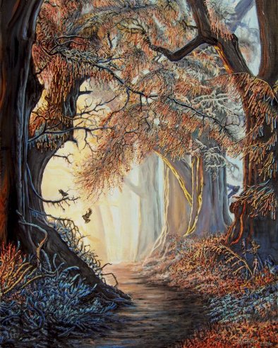 - Лајтмотив поставке свакако и јесу шуме, у чијим јединственим атмосферама препознајемо везаност за архетипско. Спајањем виђеног и имагинарног, увођењем личног и магијског у призорима монументалних, чворноватих стабала, као и шума раскошног колорита, сагледавамо везу са уточиштем - оним праисконским, јер дрвеће има корење у нашим прецима. Оно је на метафизичком нивоу знамење повезивања два антипода - живота и смрти, а шуме су полазиште за интерпретацију духовног промишљања. Наглашених крошњи, њихова колоритна треперавост видљива је кроз сва четири годишња доба, специфичног приступа феномену светлости...
