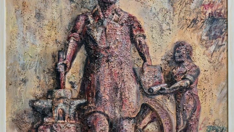 Ковач предаје мајсторско писмо калфи, рад др Данила Вуксановића