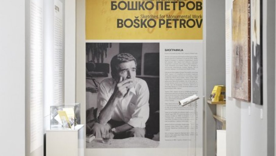 Изложба "Скице за велика дела: Бошко Петровић" ауторке Драгане Гарић Јовичић, више кустоскиње и историчарке уметности, представља 125 радова, изабраних међу 159 дела, колико чини Петртовићево наслеђе у установи у којој је и сам радио од 1953. до 1965. године. Поред класичног, штафелајног сликарства, овај аутор бавио се мозаиком, цртежом, акварелом, темпером, колажом, графиком... Био је међу првима који су прокрчили пут развоју таписерије и изборио се за њено место у нашем стваралаштву 20. века.