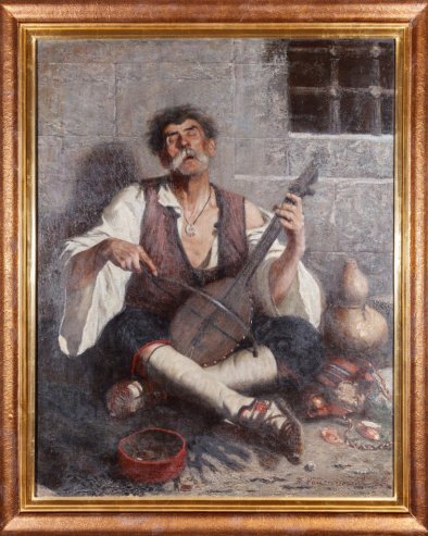 Као државни питомац на Минхенској академији, Вукановић је 1896. отворио самосталну изложбу у Грађанској касини, на којој је је изложио и "Гуслара", о коме је тадашња штампа забележила: