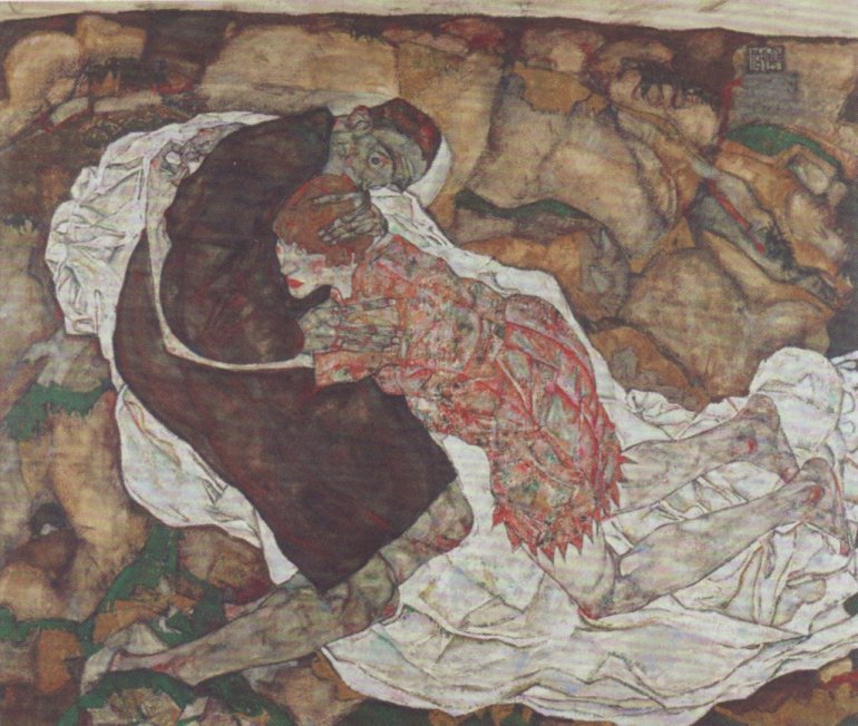 Егон се још 1914. вратио у Беч у коме је упознао Едит Хармс и венчао се годину дана касније, не прекидајући везу са Вали - волећи обе жене истовремено. Кад је сазнала за женидбу, упркос слободним схватањима, Вали га је оставила. Исте године је настала његова чувена слика "Смрт и девојка" - као успомена на болан раскид са дугогодишњом девојком. Од последица шарлаха Вали је умрла већ 1917, а наредне године једно за другим (у размаку од три дана) и Шели и Едит - оболели од шпанске грознице. Велики уметник сликао је чак и на самртној постељи, последњи цртежи били су скице за Едитин портрет. Када је преминуо, имао је само 28 година.