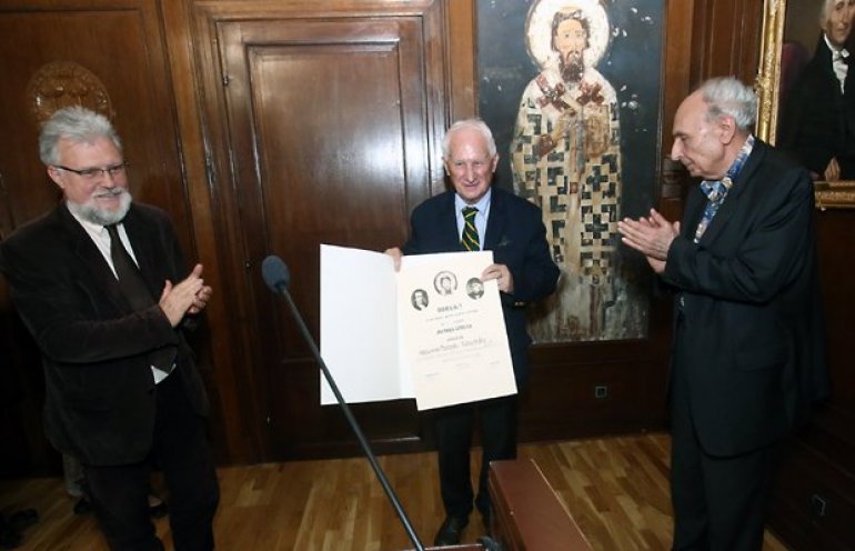 ПОВЕЉУ намењену почившем проф. др Живојину Станојчићу, аутору Граматике на којој се образовао низ наших генерација, примио је његов син, такође лингвиста, проф. др Славко Станојчић. Он се захвалио и дародавцу и свом оцу који је предано бринуо о српском језику.