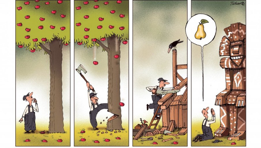 - Чини ми се, ипак, да се ту ништа није много променило. Да су и туш и труд просути. Карикатуриста је све мање, свуда на планети. Мене садашњица подсећа на јапански воз, који јури 300 на сат, а ми гледамо кроз прозор како живот промиче. Потребан нам је интермецо, неки други прозор да видимо ствари око себе на другачији начин.
