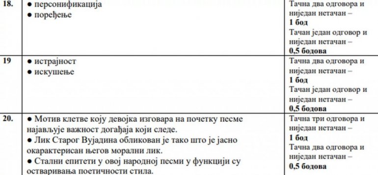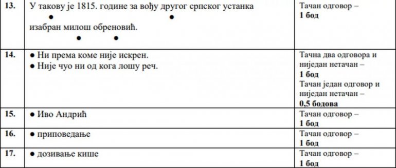ОВО СУ РЕШЕЊА ТЕСТА ИЗ СРПСКОГ ЈЕЗИКА: Одговори на питања која су највише намучила мале матуранте (ФОТО)